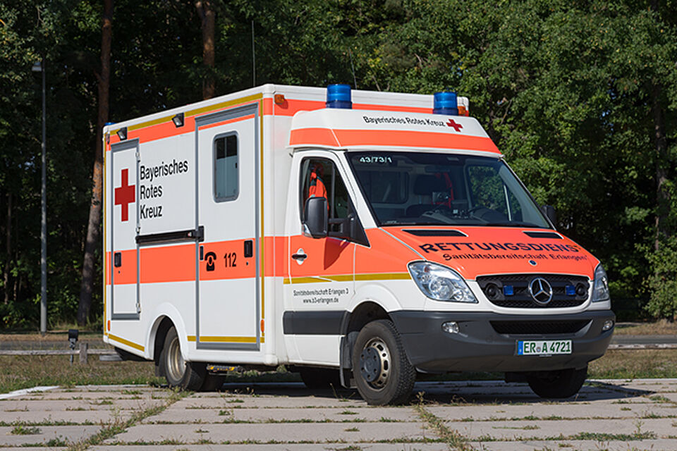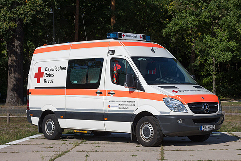 Für kleinere Sanitätsdienste ist das Fahrzeug mit Notfallrucksäcken und einem automatischem Defibrillator ausgestattet.